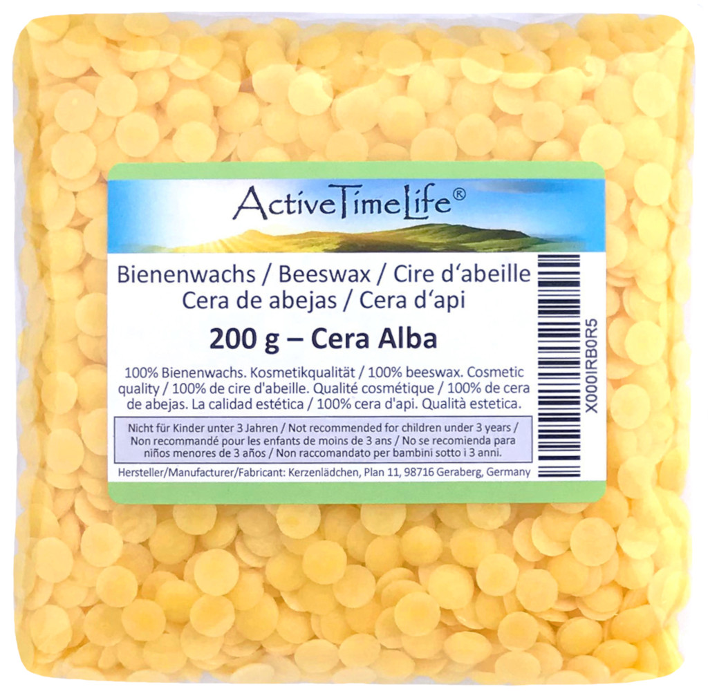 Das Bienenwachs besteht aus 100% natürlichem Bienenwachs in Kosmetikqualität. Es eignet sich hervorragend zur Herstellung von Lippenbalsamen, Handcremes, Lotionen, Seifen, Augenstiften und reinsten Bienenwachs-Kerzen.